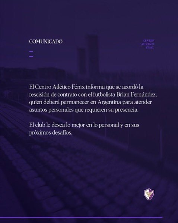 Brian Fernández rescindió con Fénix de Uruguay sin debutar por «motivos personales»