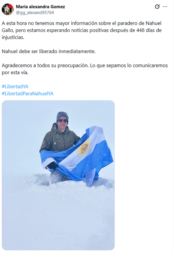 Así está hoy Nahuel Gallo tras ser liberado en Venezuela