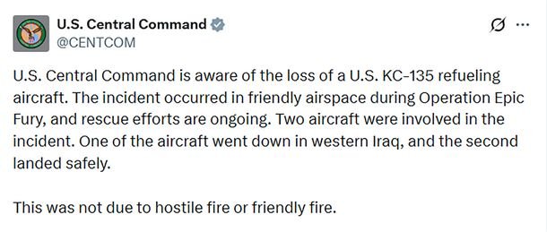 En el marco de la guerra que se desarrolla en Medio Oriente, desatada por el ataque de Estados Unidos e Israel a Irán, las fuerzas armadas estadounidenses informaron que perdieron un avión sobre territorio de Irak. Según se informó oficialmente, se trata de un avión militar de reabastecimiento en vuelo que se estrelló en el […]