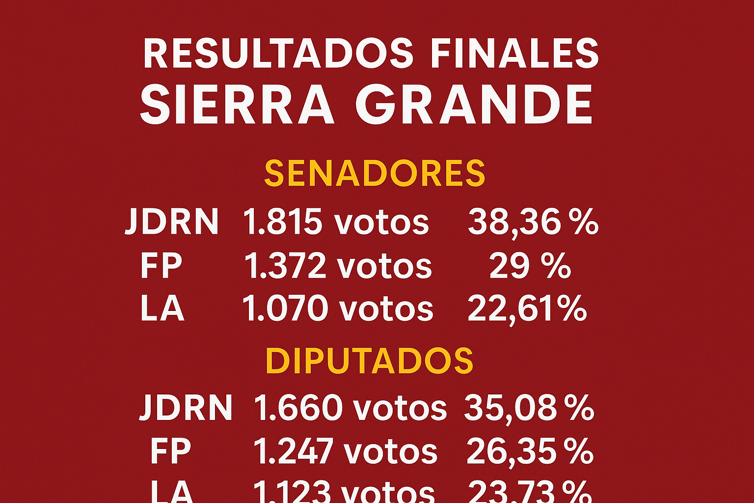 Concluido el escrutinio de las elecciones locales en Sierra Grande, los resultados oficiales confirman una contundente victoria de Juntos defendemos Río Negro, espacio liderado por la intendenta Roxana Fernández. 🏛 Senadores 🗳 Diputados El espacio oficialista logró mantener su liderazgo en la ciudad, consolidando una tendencia favorable que se reflejó tanto en la categoría de […]