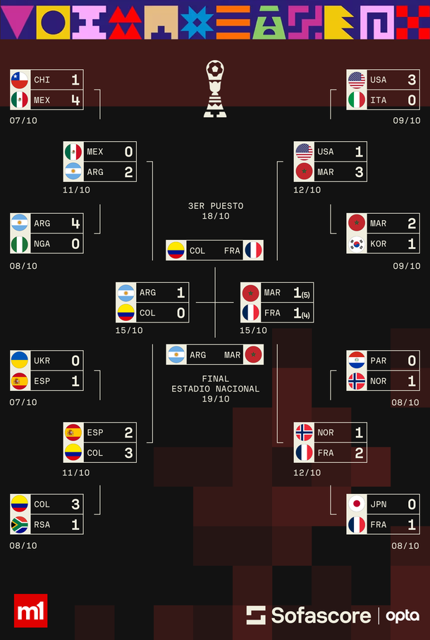La «Albiceleste» llegaba con un rendimiento impecable: cinco triunfos en cinco partidos y una clara identidad de juego. En la fase de grupos superó a Cuba (3-1), Australia (4-1) e Italia (1-0). Luego, en los cruces directos, goleó 4-0 a Nigeria en octavos y venció 2-0 a México en cuartos, con goles de Maher Carrizo y Mateo Silvetti.
