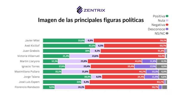En cuanto al gobernador bonaerense, Axel Kicillof, el sondeo muestra una leve mejora en septiembre respecto al mes anterior. Su positiva asciende a 42,6%, frente al 39,4% de agosto, mientras que la negativa baja a 50,7% (era 51,5%) y la nula se reduce a 6,5% desde el 8,7% previo. Entre los votantes de Massa mantiene un nivel de adhesión muy alto, con 85,8% de imagen positiva, lo que lo consolida como el principal referente dentro de ese espacio. En cambio, entre los votantes de Milei predomina el rechazo casi total: 87,5% lo califica negativamente. La evolución indica que Kicillof logra robustecer su núcleo de apoyo y achicar marginalmente su saldo negativo, aunque sigue siendo un dirigente con fuerte polarización, con adhesiones muy altas en su electorado propio y rechazos contundentes en el campo opositor.